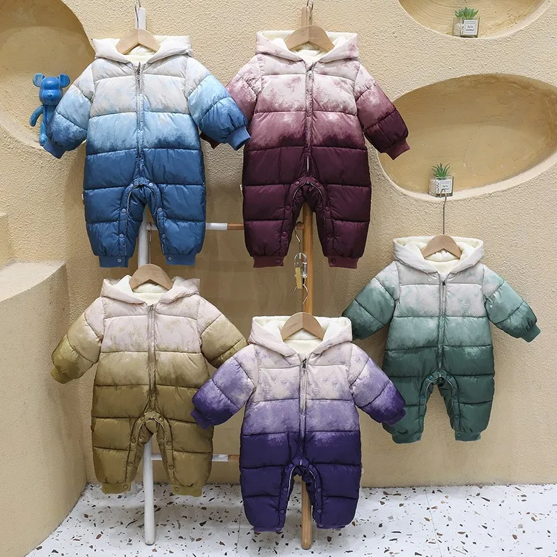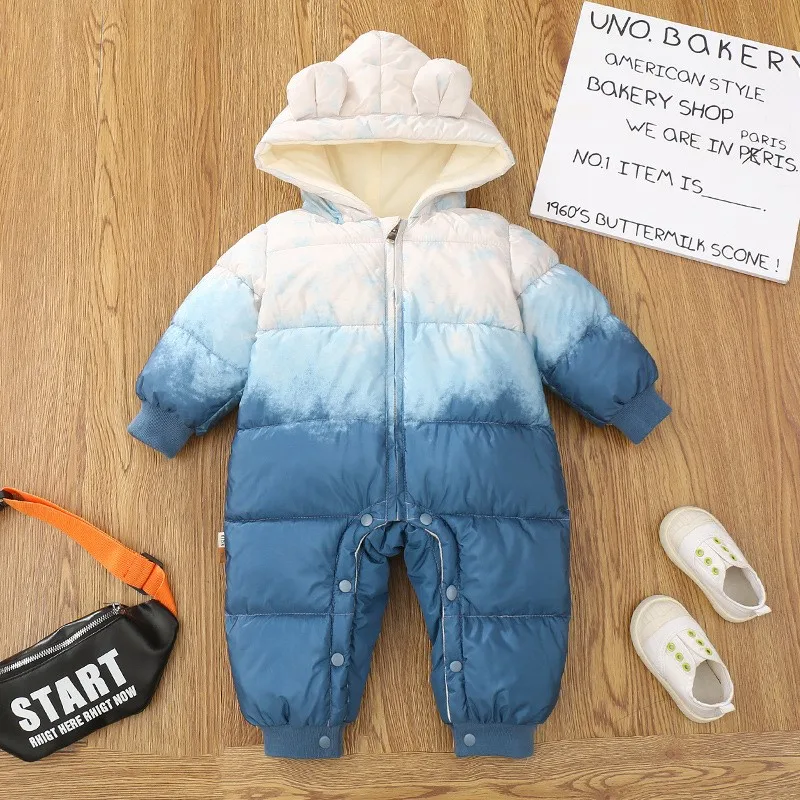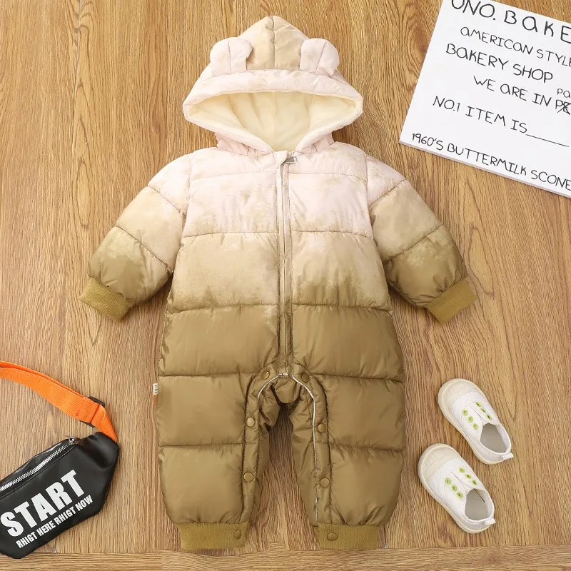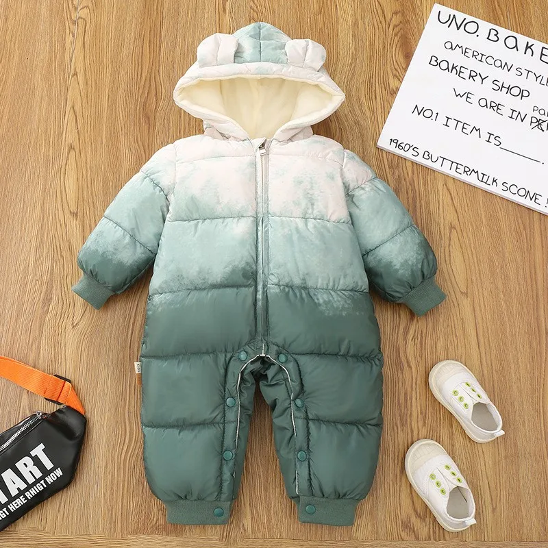 Keep your little one warm and cozy with this gradient cotton padded baby jumpsuit. Perfect for winter and demi-season wear, this soft, plush outfit provides full-body comfort for newborns, infants, and toddlers. The convenient design allows easy dressing and movement, while the gentle fabric is kind to delicate skin. Ideal for both baby boys and girls, this stylish and functional jumpsuit is perfect for everyday wear, outings, or family photos.