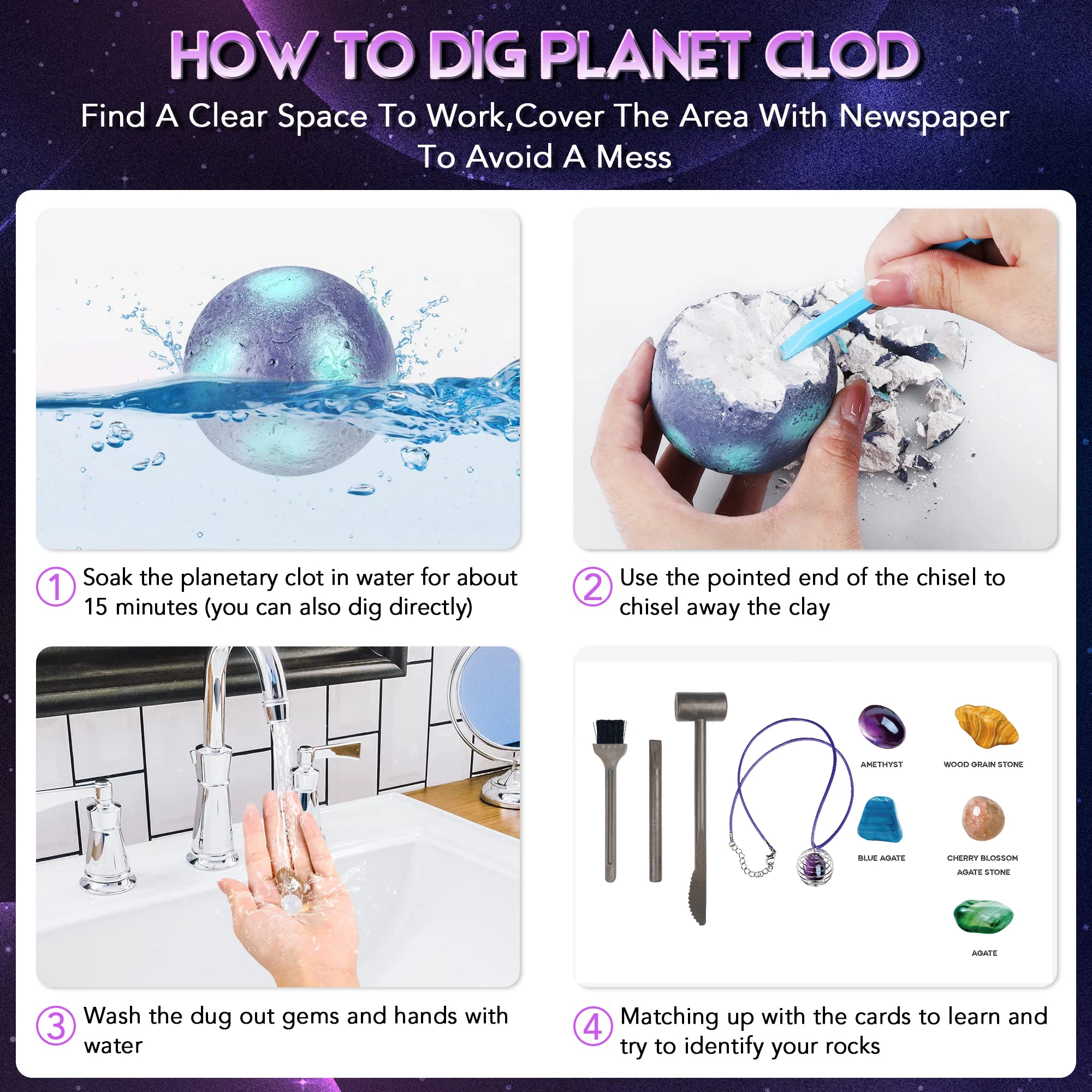 Let young explorers uncover hidden wonders with the Children’s Archaeological Digging Toy – Treasure Planet Gem Ore Exploration Set. Designed to spark curiosity, this hands-on science kit allows kids to dig, chip, and discover colorful gemstones inspired by the planets in our solar system.