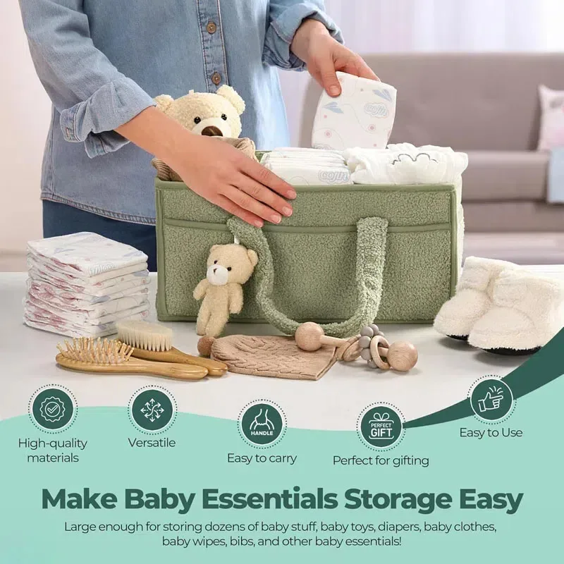 Keep your baby’s essentials neat and accessible with this plush bear diaper organizer. Featuring multiple compartments, it’s perfect for storing diapers, wipes, bottles, and other newborn necessities. Soft yet durable, this caddy adds a charming touch to any nursery while helping parents stay organized. Ideal for home use or travel, it’s a practical and adorable solution for baby care and diaper storage.