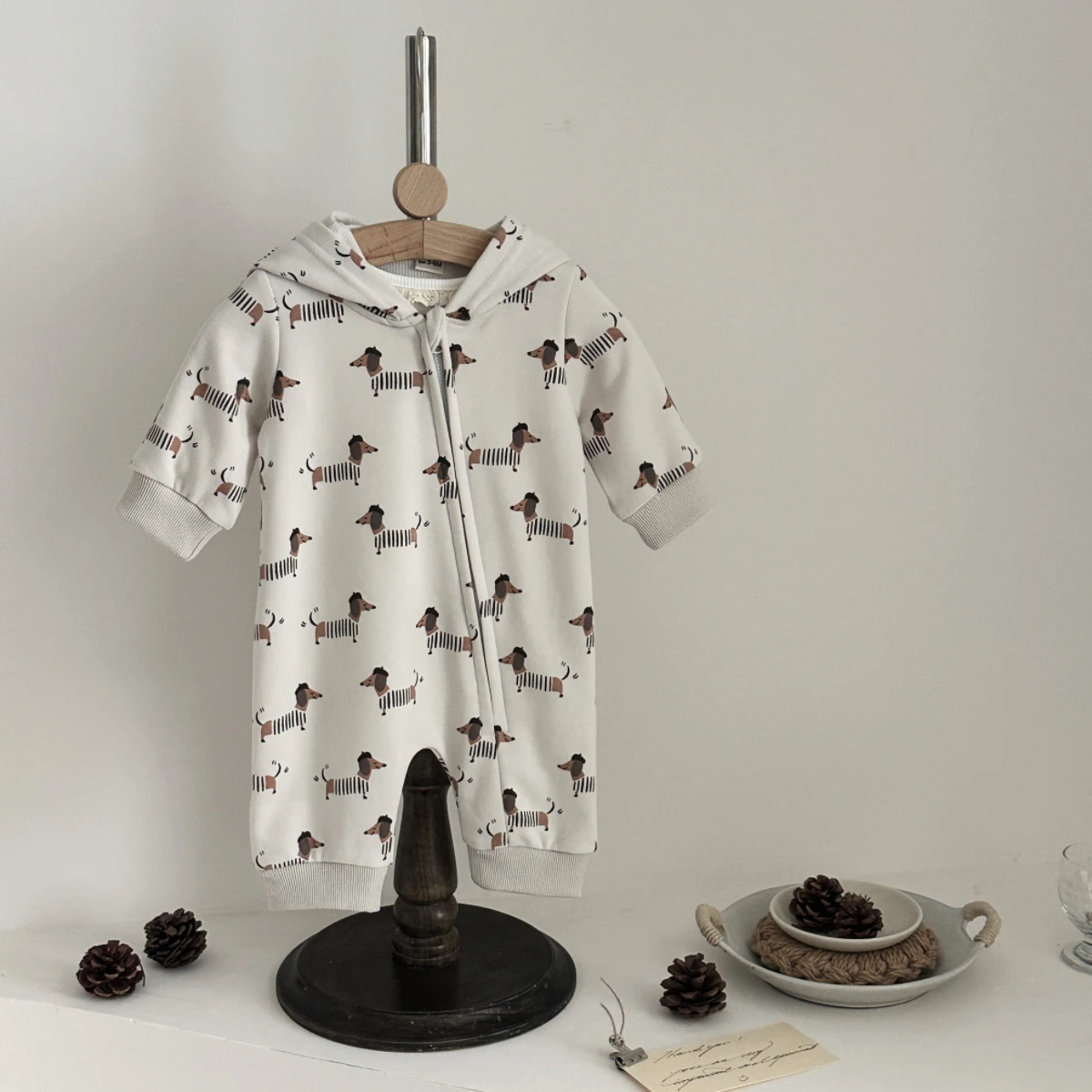 Keep your little one cozy and adorable this autumn with this sausage dog print hooded baby outfit. Designed for crawling infants, the soft, breathable fabric ensures comfort while allowing easy movement. Suitable for both boys and girls, this unisex romper combines playful style with practical design. Perfect for everyday wear, family outings, or as a thoughtful gift, it’s a must-have addition to your newborn’s wardrobe.